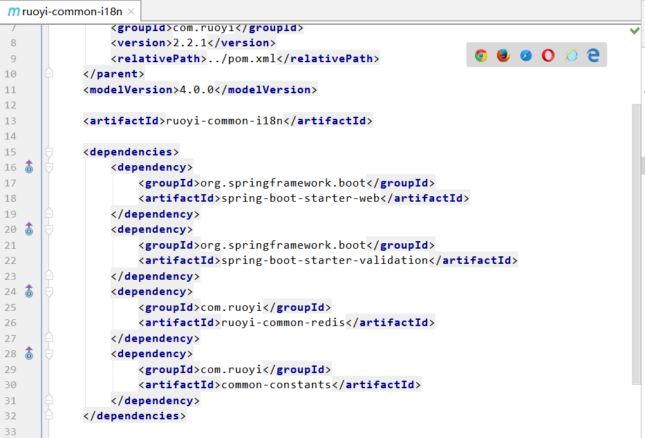 所以这里会引入spring-boot-starter-web依赖,虽然不会重复依赖,为了使结构清晰,在引用国际化模块时,我会排除国际化包引入的spring-boot-starter-web依赖。后续会截图说明。
