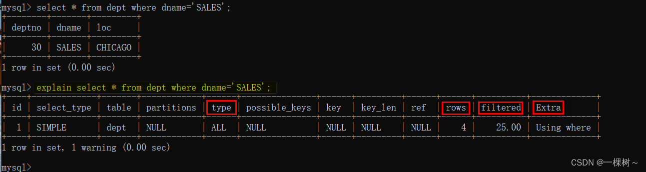 - Using filesort:MySQL需要额外的一次传递,以找出如何按排序顺序检索行。通过根据联接类型浏览所有行并为所有匹配WHERE子句的行保存排序关键字和行的指针来完成排序。然后关键字被排序,并按排序顺序检索行;