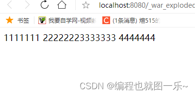 首先是直接输出1111111,然后通过response对象输出2222222,然后通过out对象输出3333333,最后通过<%=%>脚本输出4444444。让我们来看一下效果: