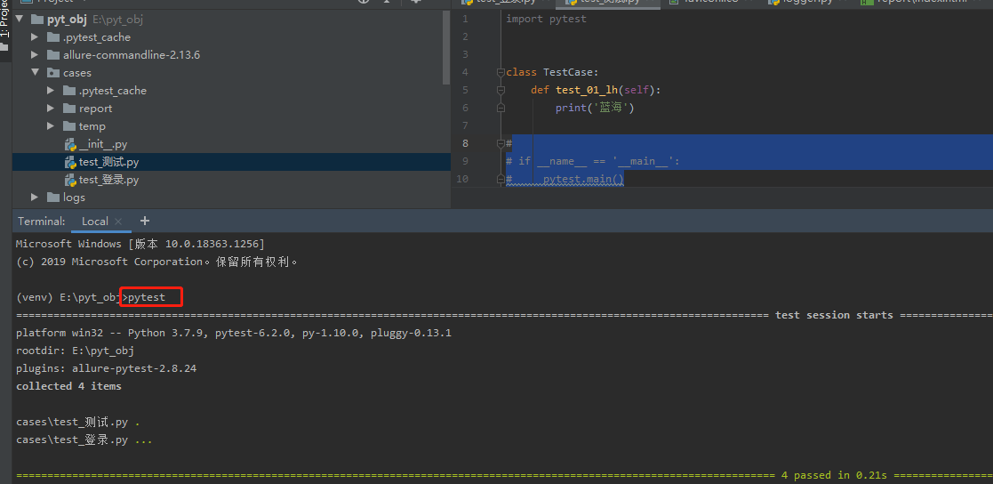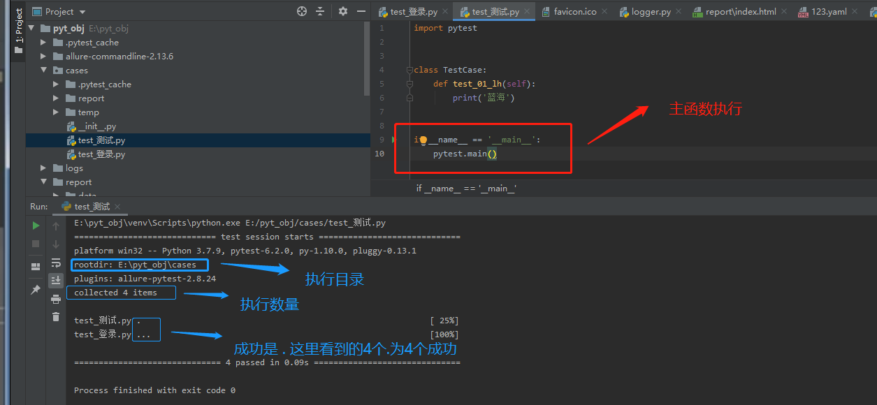 3.可以指定目录执行 pytest.main(['vs', ' 模块名 '])