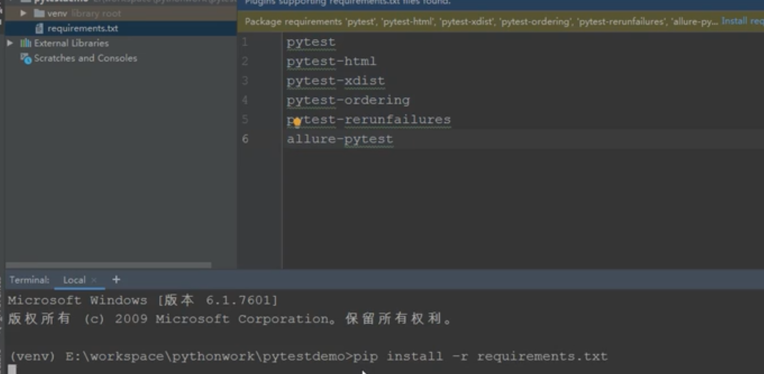安装:创建一个文件,将需要的安装包全部写在文件内。使用pip install -r 文件名