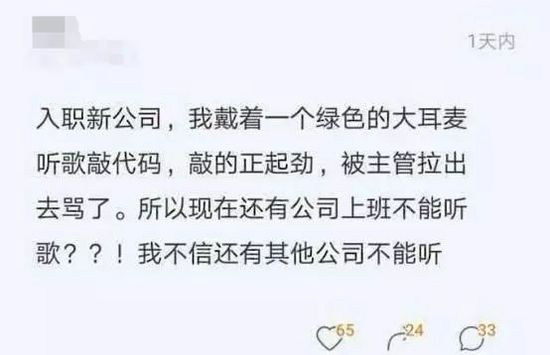 2、无聊解压。 有时候敲代码或者改bug,是他们能力范围之下或者经常重复的动作,这样的工作不用怎么深度思考,所以戴着耳机,听些振奋人心的歌曲或者舒缓的音乐,可以帮助他们度过这段无聊的时间,也激发他们工作的动力。