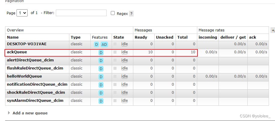 value = @Queue(value = "ackQueue",declare = "true"//指定一下队列名,默认持久队列,不指定则为临时队列