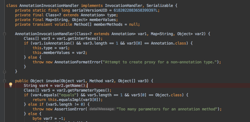 当调用该代理实例的获取值的方法时,就会调用执行AnotationInvocationHandler里面的逻辑,将之前存入的注解信息 取出来。