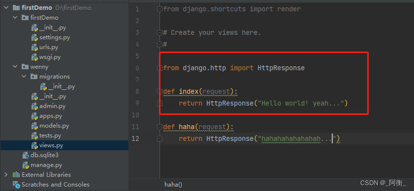 在wenny/views.py中添加以下代码