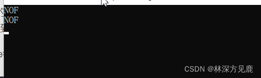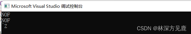不难看出,当我输入了NOF的时候,程序并没有按照我想要的停下来,为什么这样子呢?是因为getchar每次从输入缓冲区读取一个字符,相当于NOF三个字符是分开输入,然后分开输出的,此时,如果想要让程序停下来,需要按下“Ctrl+Z”,用于结束循环,效果如下: