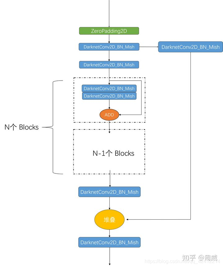 - 相较于YOLO V3的DarkNet53,YOLO V4用了CSPDarkNet53