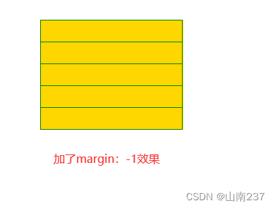 margin: -1px;/*本句设置被分为5个格子的div,border重叠产生两条线重叠变粗效果消失,原理为下面的div顶部border被上面的单个div覆盖不能显示,设置值为border值(解决两个div之间边框重叠线加粗问题)*/
