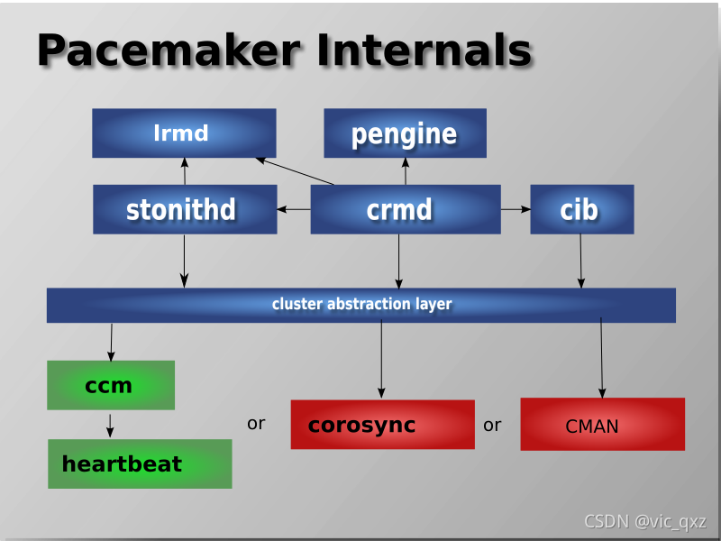 Pacemaker是整个高可用集群的控制中心,用来管理整个集群的资源状态行为,客户端通过 pacemaker来配置、管理、监控整个集群的运行状态。Pacemaker是一个功能非常强大并支持众多操作系统的开源集群资源管理器,Pacemaker支持主流的 Linux系统,如 Redhat的 RHEL系列、 Fedora系列、 openSUSE系列、Debian系列、 Ubuntu系列和 centos系列,这些操作系统上都可以运行 Pacemaker并将其作为集群资源管理器。