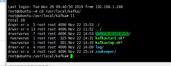 创建Zookeeper日志目录 mkdir /usr/local/kafka/log/zookeeper