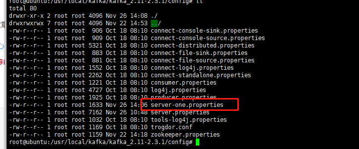 进入配置目录 cd /usr/local/kafka/kafka_2.11-2.3.1/config