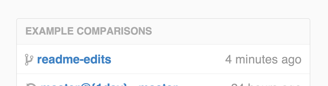 2. 在“ Example Comparisons”对话框里,选择你的分支,readme-edits,与main分支进行比较
