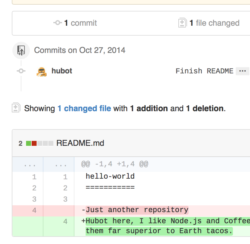 你甚至可以向自己的仓库发起pull(拉取)请求并且自己合并它们,这个一个在你做大型项目之前学习GitHub的好办法。