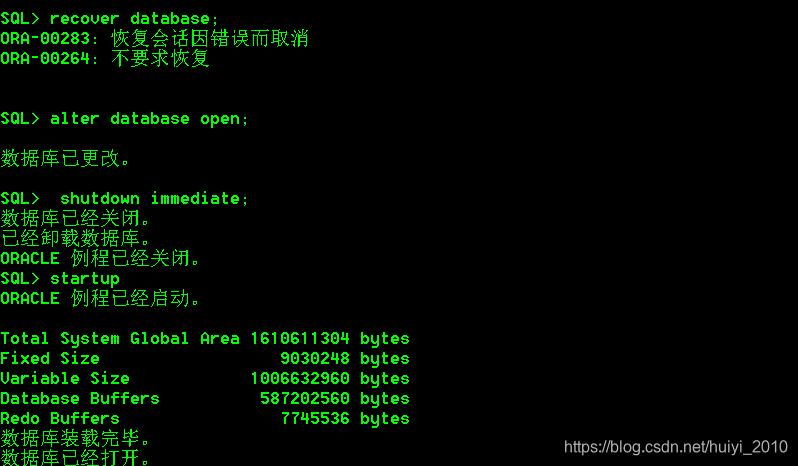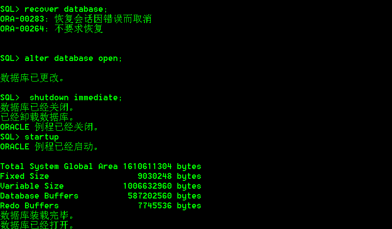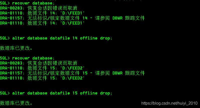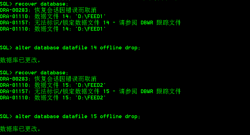 注意:如果使用recover database 出现无法标识情况,请继续drop。直到不出现。