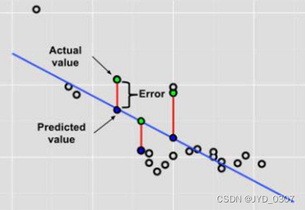 将模型与数据点之间的距离差 之和做为 衡量匹配好坏的标准。 误差越小, 匹配程度越大。
