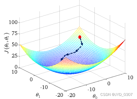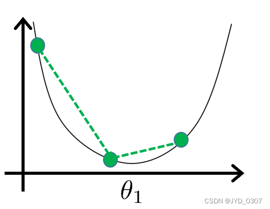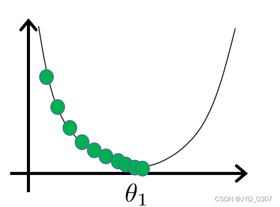 如果α太大,梯度下降法可能会越过最低点。甚至可能无法收敛,或者偏离。