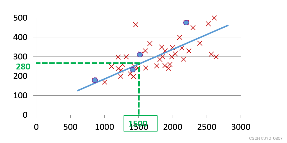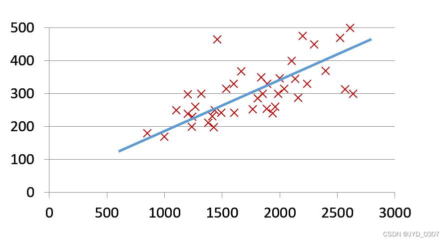 线性回归分析常用于分析两个变量X和Y 之间的关系,例如X为尺寸 ,Y为房价之间的关系。