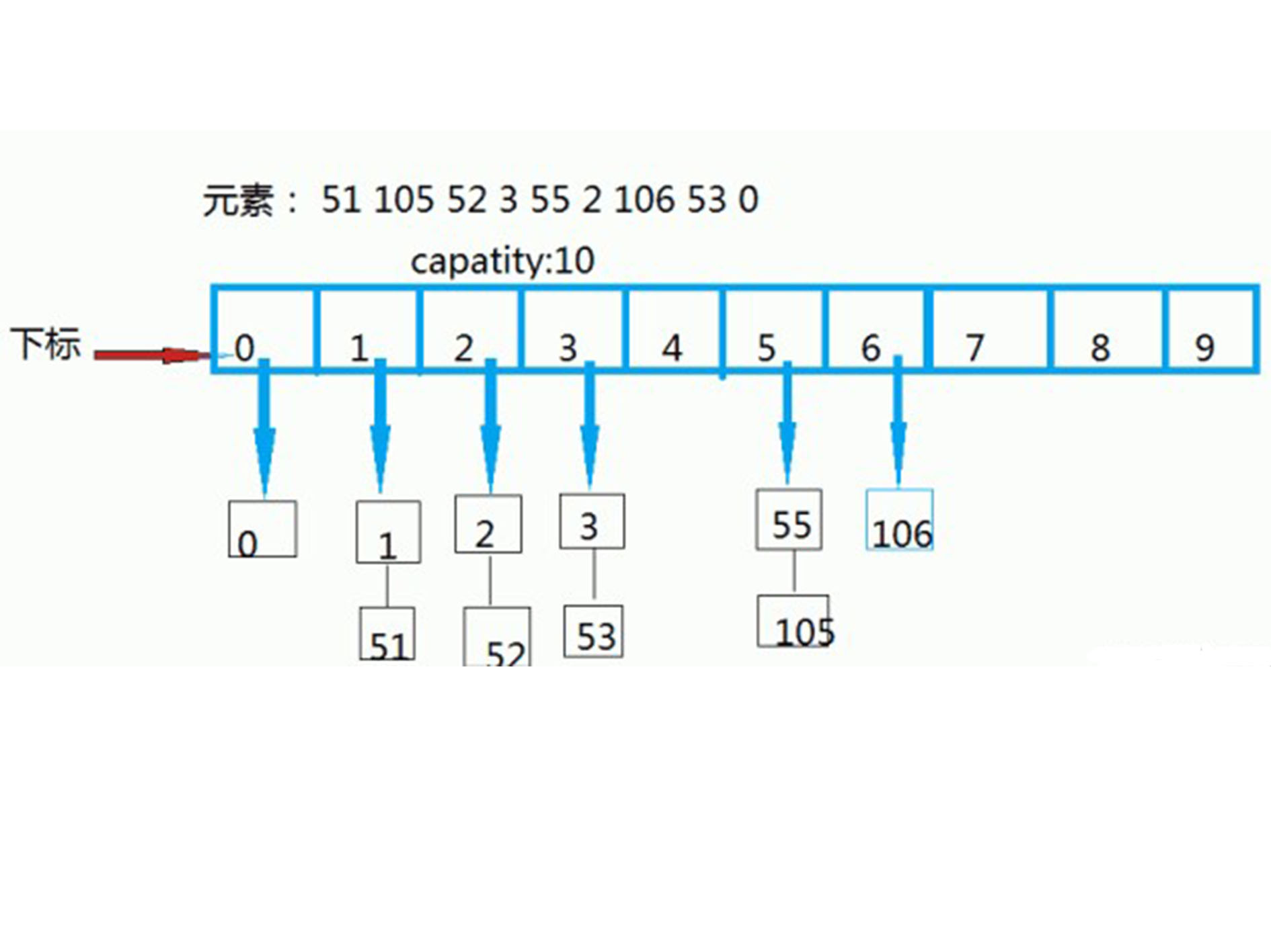 因为有10条记录,我们就先让p=10,现在要把第一个元素51放入hashmap中,51%10=1 所以把它放入数组下标为1的链表中,链表中第一个位置已经存放1,把51接着在链表中的第二个位置中。