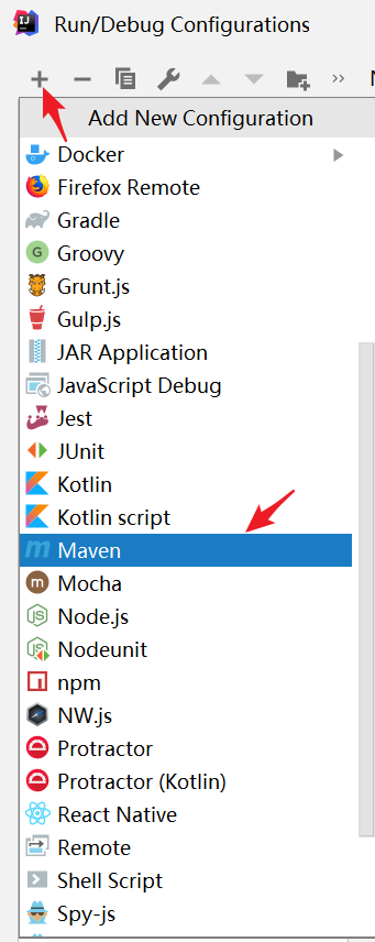 2、点击“+”选择maven