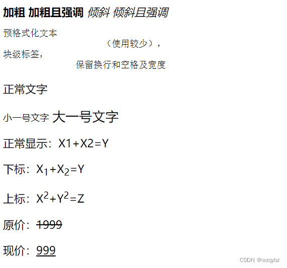 5.<sub>和<sup>标签:定义文字下标和上标(用来调整文本正常显示的基线,自动小一号)。