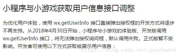 在18年4月25日小程序做了一次更新,小程序授权不再支持直接弹框获取用户信息授权了