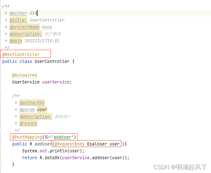 其次,前端使用post方法请求,参数为对象时,后台接收方法上,需要添加注解: