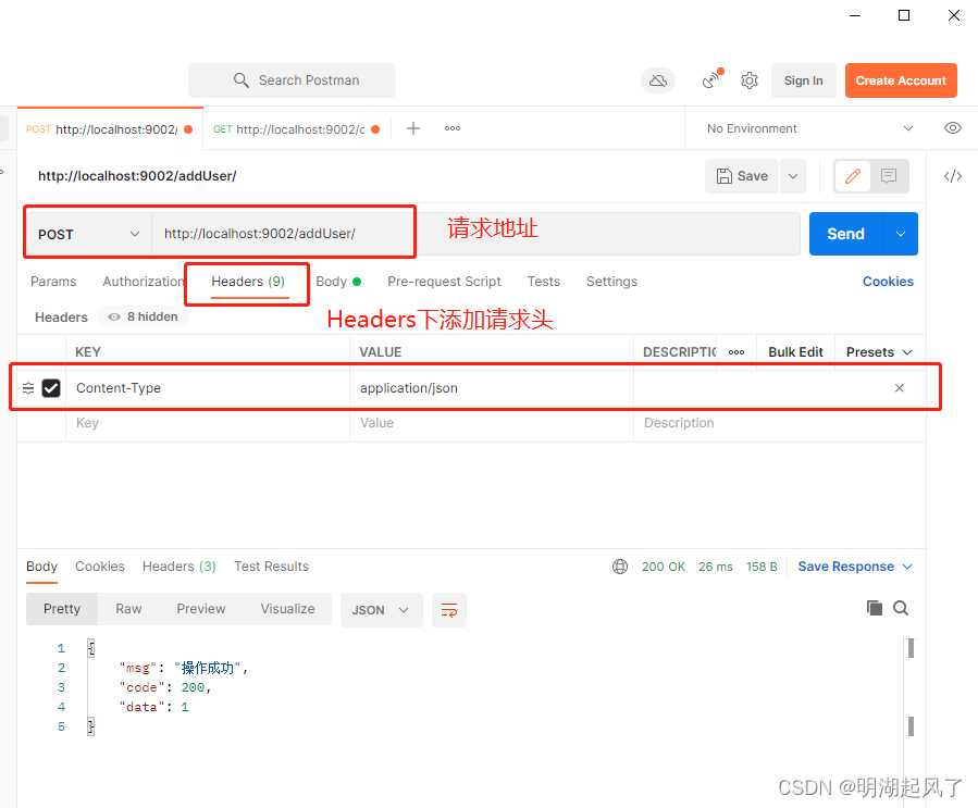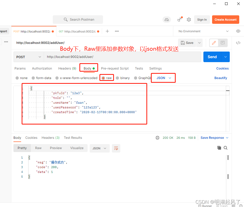 最后,做一个补充,调用接口工具我使用的是Postman工具,使用Postman模拟发送post请求: