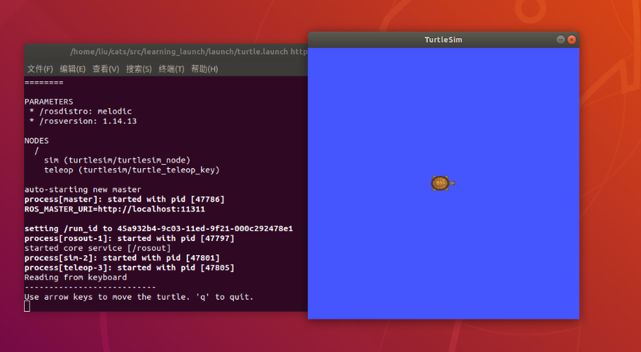 roslaunch learning_launch turtle.launch效果如下: