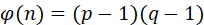 首先确定两个大素数p和q,计算n,有: