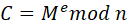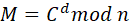 约定明文为M,密文为C,公钥对{e,n},私钥对{d,n}