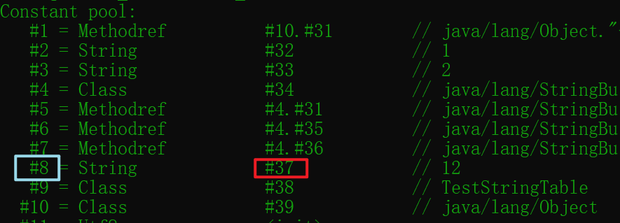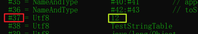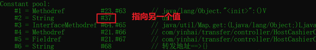 - 补充说明:# 后面有两个数字,比如说 # 3, 2 ,这是说明 这里调用了常量池的 # 3的值,而 # 3 的值又对应了两个常量符号。
