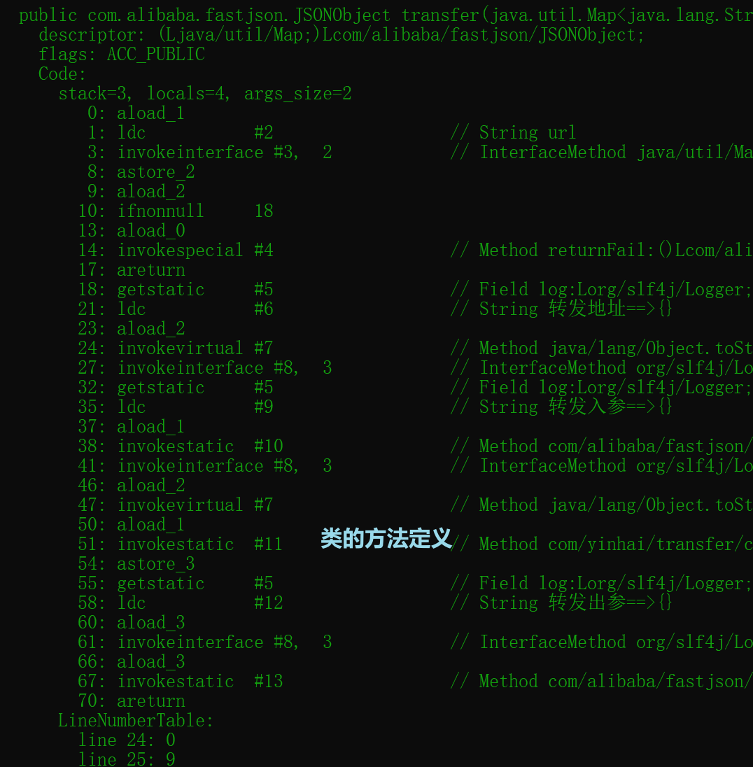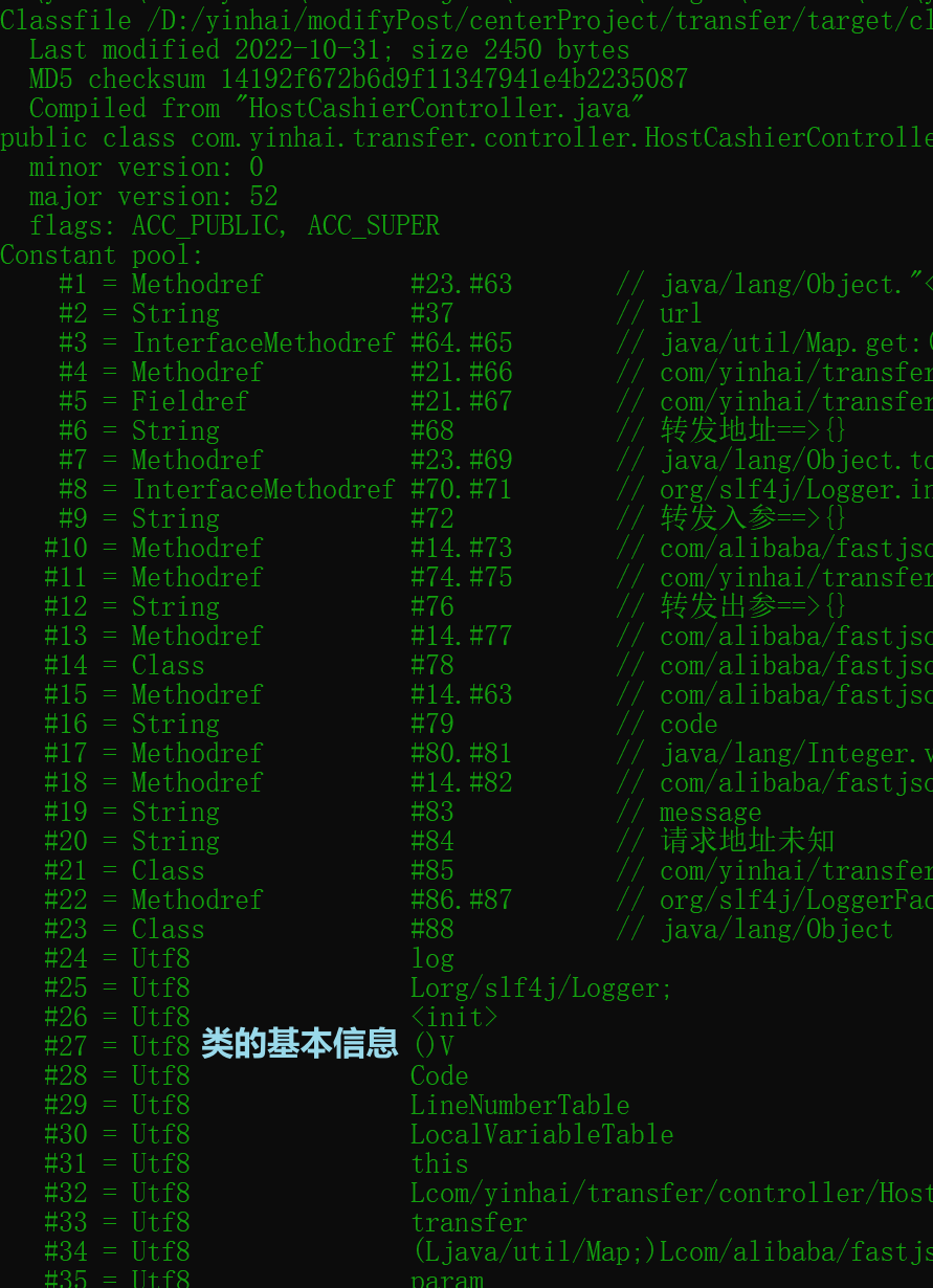 详细信息内容:类的基本信息、常量池、类方法定义、虚拟机指令
