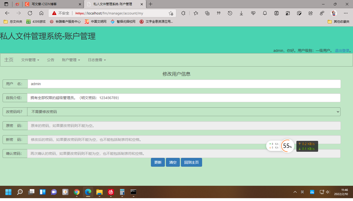 账户管理:修改自己的账户信息、修改密码等。