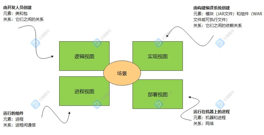 进程视图:表示运行时的组件。其中,元素表示一个进程,元素之间的关系为进程间的通信。