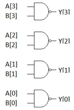 assign Y=~(A&B); //assign组合逻辑赋值语句