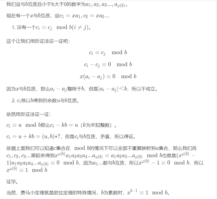 =X-1 所以不难发现,费马小定理是欧拉定理中p为素数的特殊情况。因此我们只需要证明出欧拉定理,费马小定理自然就可得证。