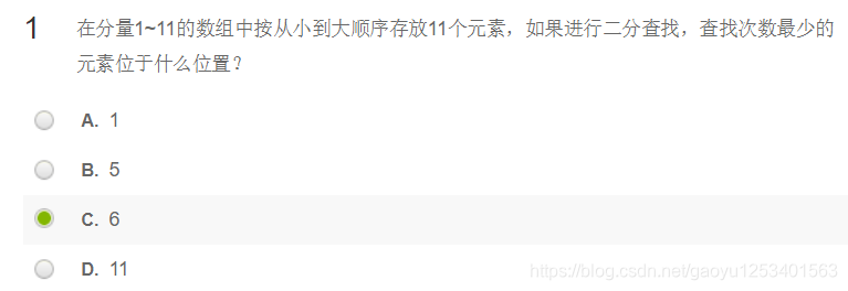 解析:将二分查找的判定树画出(判定树上每个结点需要的查找次数刚好为该结点所在的层数),然后进行相应的相加比较即可知道
