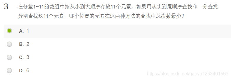 解析:判定树上每个结点需要的查找次数刚好为该结点所在的层数。(将11个元素的二分查找写成判定树的形式),结果一目了然。