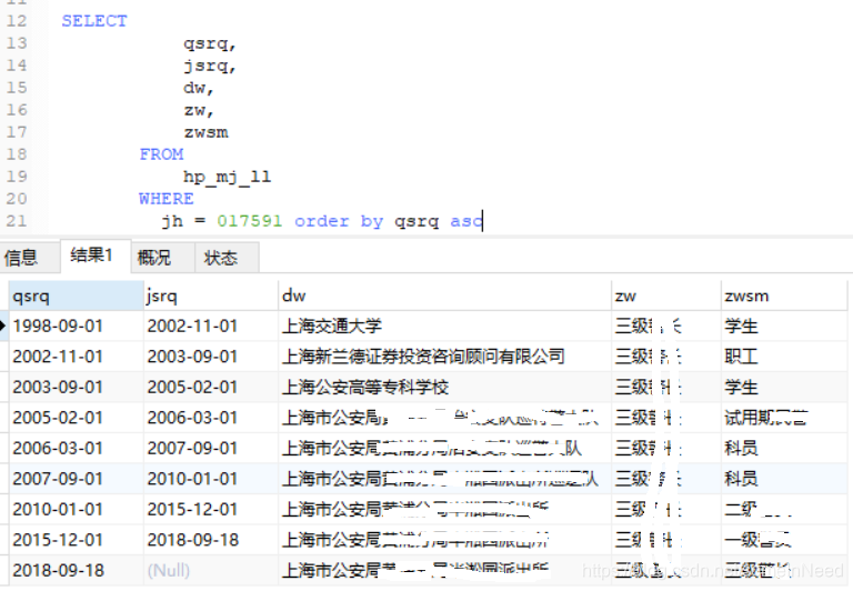 <!--下面三个查询了三张表 拼接成个人履历-->