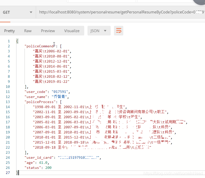 public Map<String,Object> getPersonalResumeByCode(String policeCode){