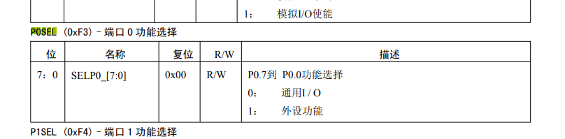 P0SEL |= 0x3C;//设置P0的io口2、3为外设功能