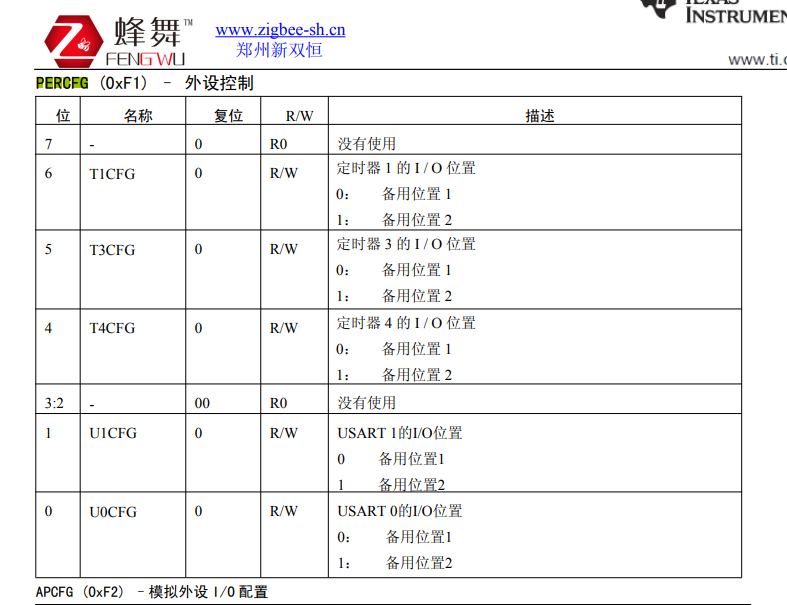 PERCFG &= ~0x01;//设置USAER0的位置为位置1