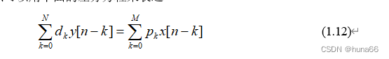 线性常系数差分方程是描述离散时间LTI系统的另一个时域模型,即系统的输入信号x[n]输出信号y[n]关系可以用下面的差分方程来表达