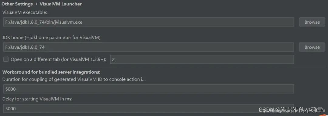 一般可用于在本地开发进行压力测试,性能测试之类的监控器,其他场景一般不推荐使用此模式启动,还会启动另外一个 Visual vm 窗口,这个窗口是 JDK bin 目录下的 JvisualVM ,如下:
