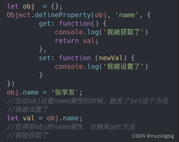 1.vue首先通过 Observer 类,使用 Object.defineProperty 方法包装了数据,使object变成一个具有 getter/setter 属性的数据。