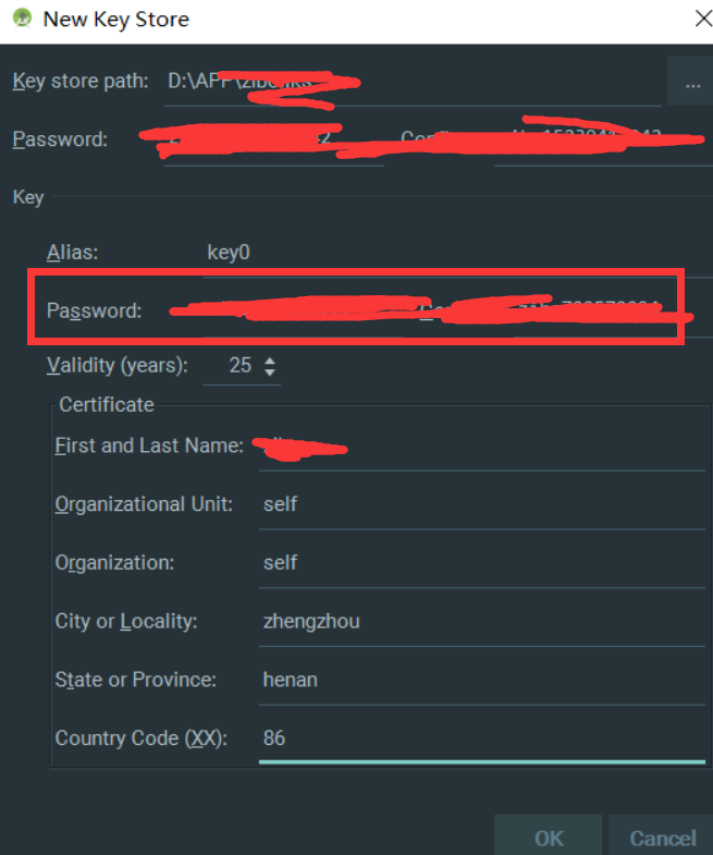 key0:Alias; 输入密匙库的密码短语: