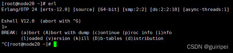 9、验证erlang是否安装成功,如果shell出现erlang命令提示符,则表明安装成功。