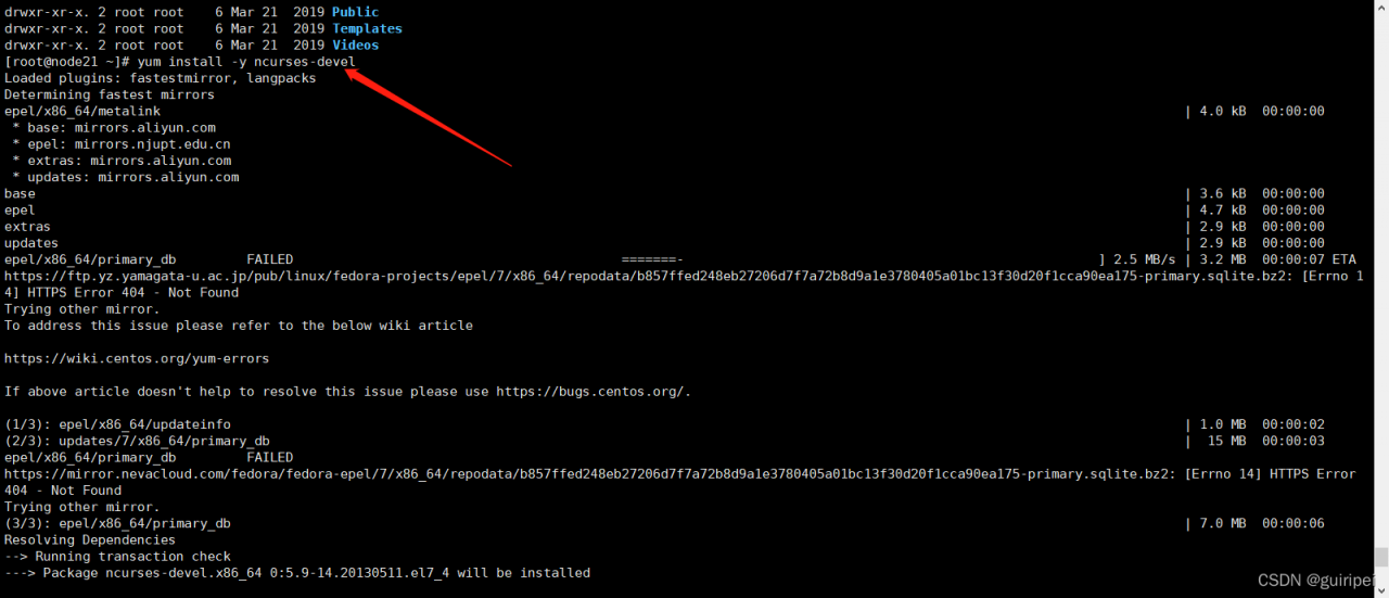 第一个坑出现:执行失败,提示curses库未找到!解决方法是安装curses库。