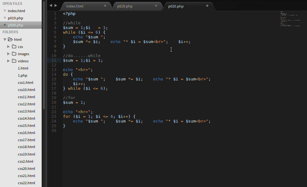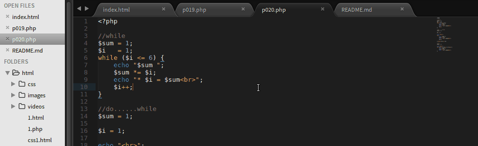 打开需要格式化代码的文件,如这里的p020.php文件,再使用快捷键 "ctrl+alt+f" 即可。