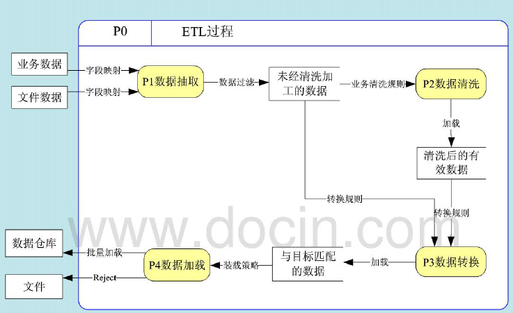 一般情况下,数据仓库分为ODS、DW两部分。通常的做法是从业务系统到ODS做清洗,将脏数据和不完整数据过滤掉,在从ODS到DW的过程中转换,进行一些业务规则的计算和聚合。